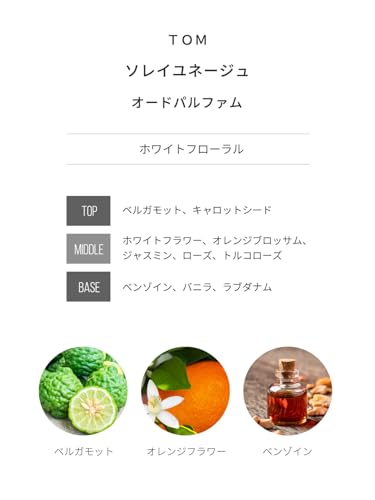 トムフォードの「ソレイユネージュ」は、冬の冷たさと太陽の温かさをテーマにしたユニークな香りで、香調はフローラル、フレッシュ、ウッディの要素が巧みに組み合わさっています。
